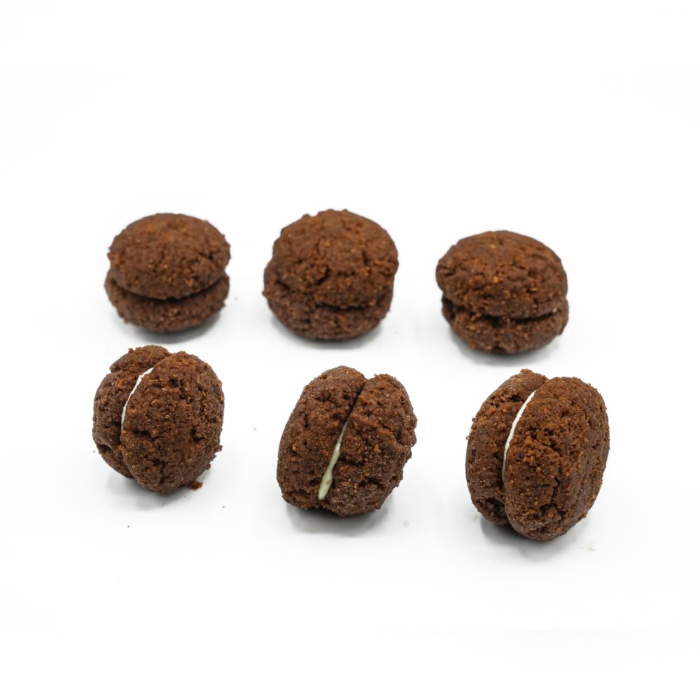 Versione golosa dei classici Baci di Dama: due biscotti di frolla al cacao con farina di mandorle e nocciole uniti da una crema di cioccolato fondente. Perfetti per gli amanti del cioccolato. 230g