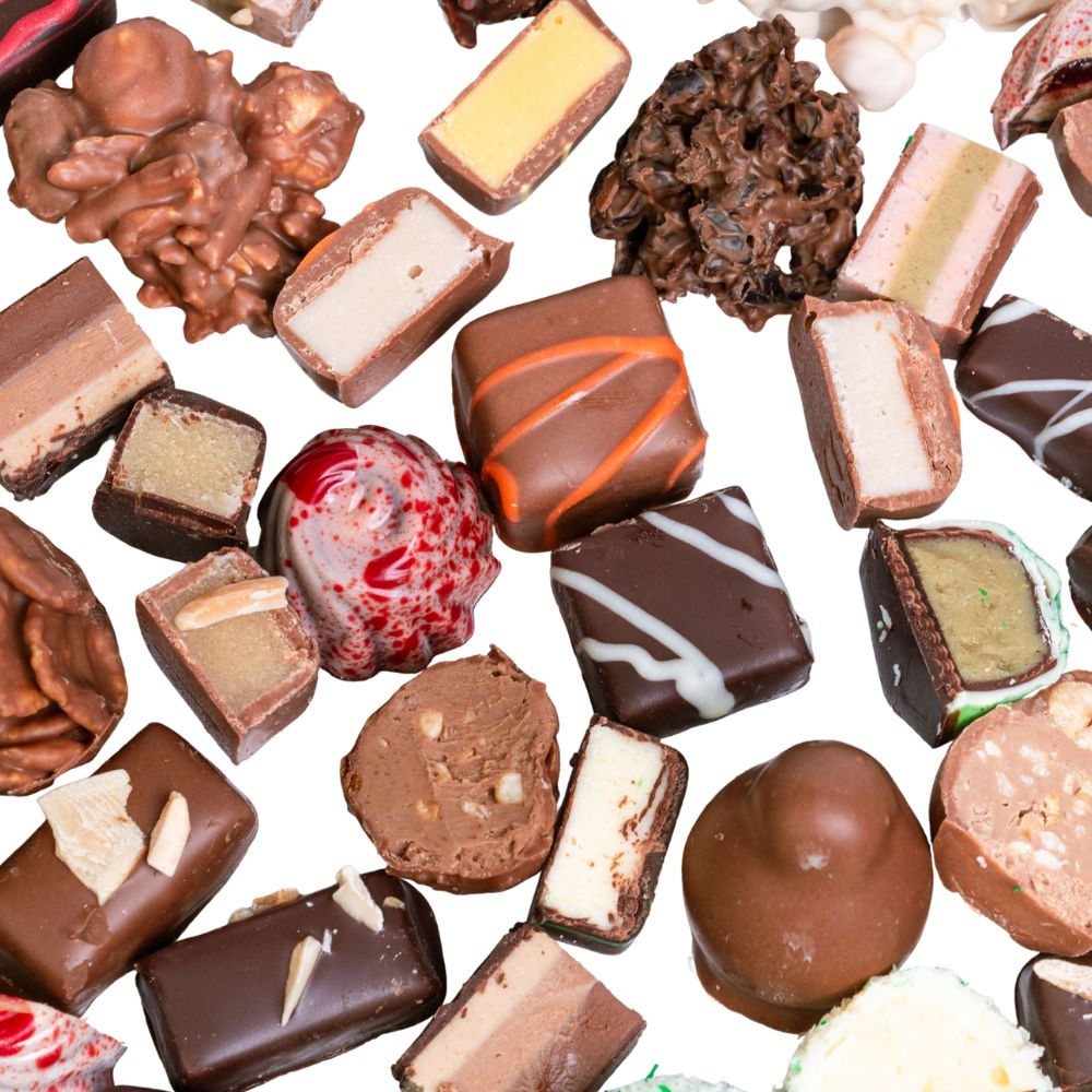 Scatola con deliziosi cioccolatini assortiti. Scegli il numero di pezzi che preferisci tra le nostre proposte.
