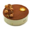 Biscotto morbido al cioccolato e bavarese alla nocciola, croccante al pralinato di nocciole e mousse di cioccolato fondente.